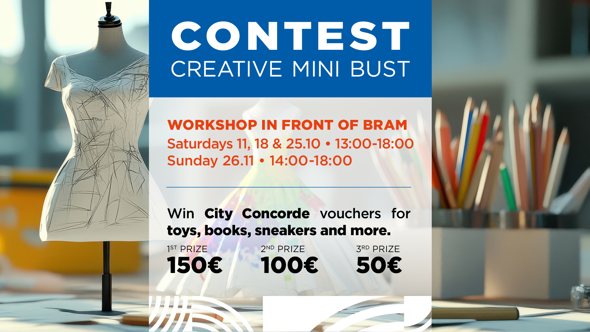 Young participants will have the chance to decorate fashion busts in a creative and stylish way. The finished pieces will then be displayed at City Concorde – a proud moment for every little artist!