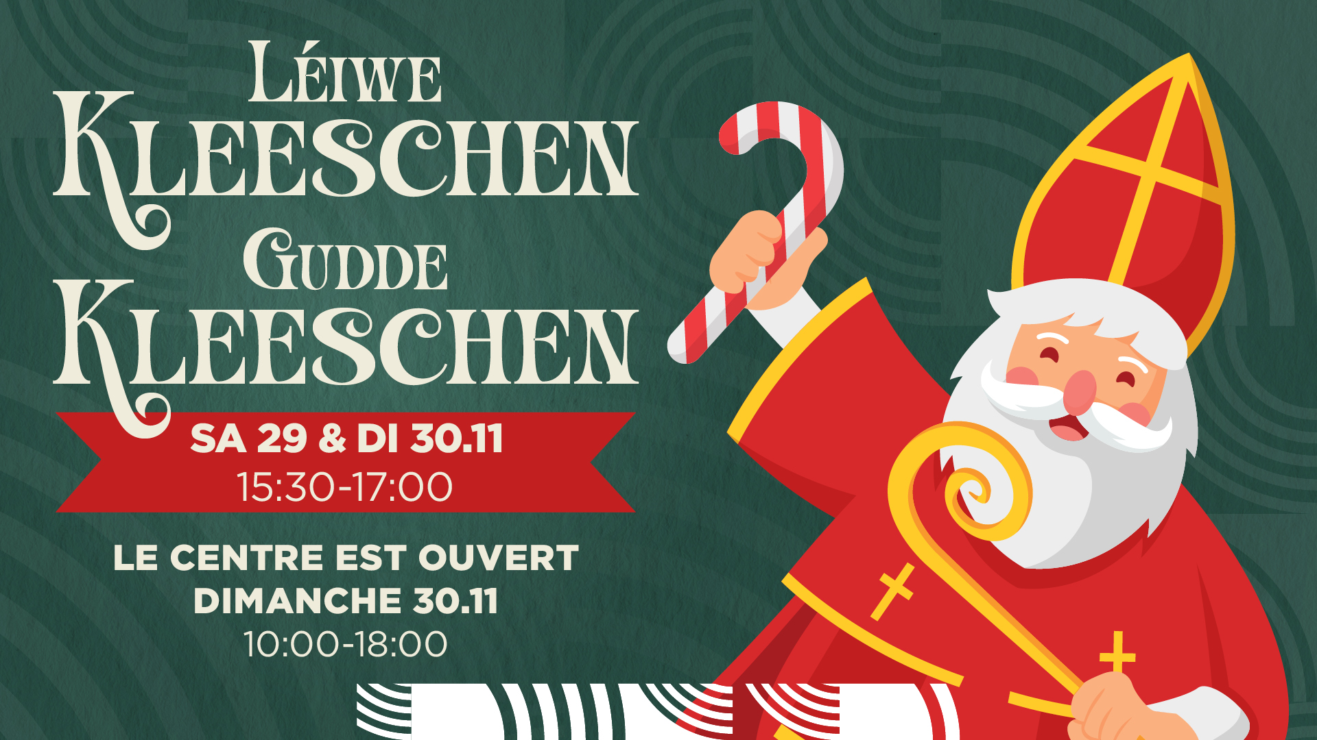 Le samedi 29 novembre et dimanche 30 novembre, de 15h30 à 17h00, le Saint-Nicolas se promènera dans tout le City Concorde pour distribuer des sachets plein de friandises et de surprises aux enfants qui ont été sages cette année...